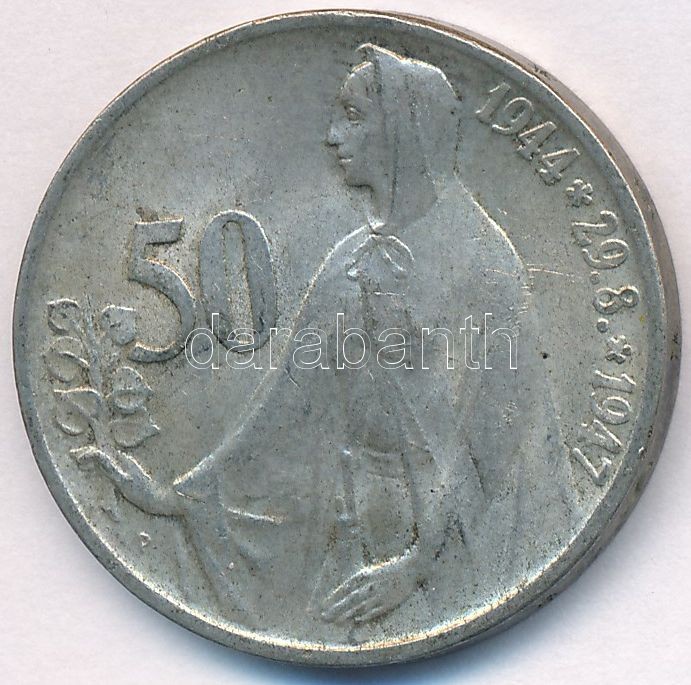Czechoslo... https://www.darabanth.com/hu/253-Gyorsarveres/253.0/Numizmatika/Kulfoldi-fem-es-ezustpenzek~200012/Csehszlovakia-1947-50K-Ag-Szlovak-felkeles-T2--Czechoslovakia-1947-50-Korun-Ag-Slovak-upris~II1230564