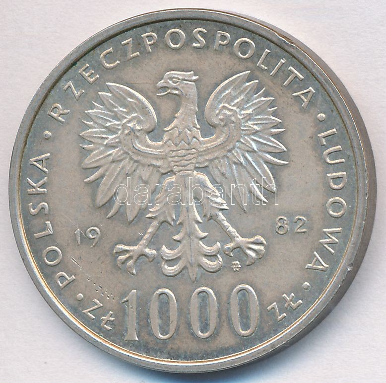Poland 1982. 1000 Zlotych Ag "Visit of Pope John Paul II" C:XF edge error, patina