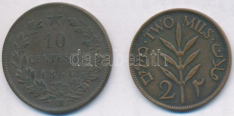 Mixed: Italy 1866OM 10 Centesimi Cu "Vittorio Emanuele II" + Palestina 1927. 2 Mils Br C:XF,VF