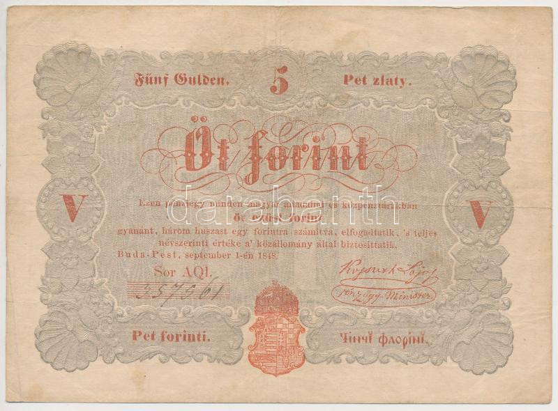 1848. 5Ft "Kossuth bankó" vörösesbarna T:III