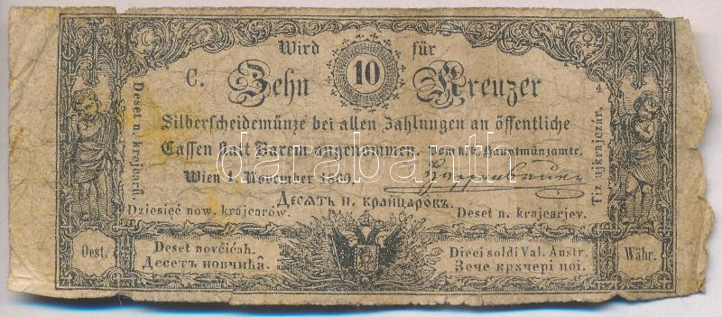1860. 10Kr "K. K. Hauptmünzamt für Silberscheidemünze" alul kétsoros szöveg T:III-,IV