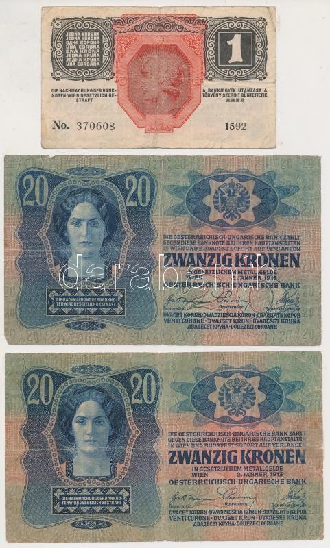 1916. 1K + 1913. 20K (2x) mindkettő ragasztott, mindhárom bankjegy &qu... https://www.darabanth.com/hu/253-Gyorsarveres/253.0/Numizmatika/Magyar-bankjegyek~200007/1916-1K-plus-1913-20K-2x-mindketto-ragasztott-mindharom-bankjegy-Temes-Varmegye-Vinga-Kozseg~II1225456