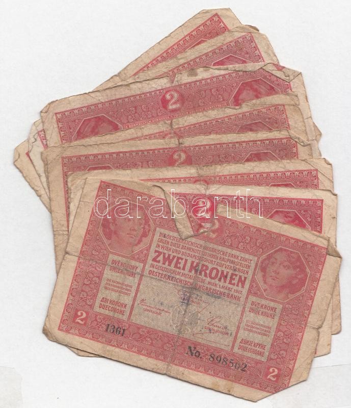 1917. 2K (8x) mind felülbélyegzett T:III-,IV