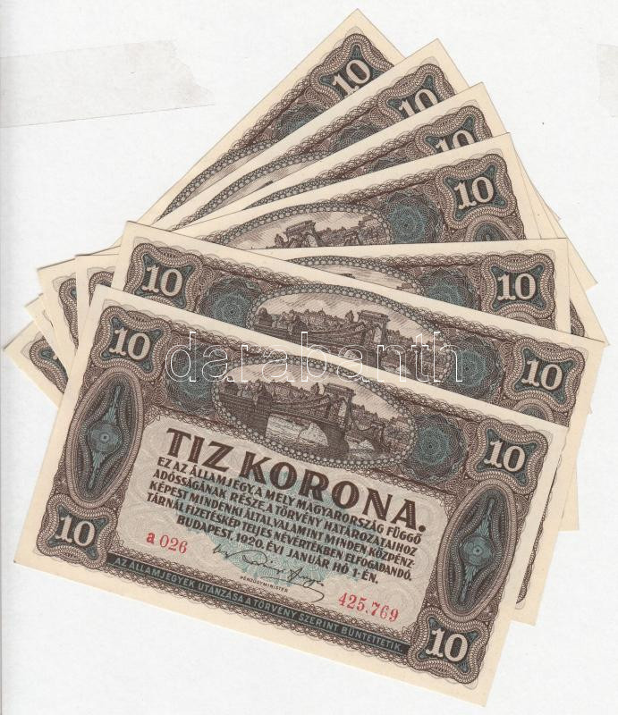 1920. 10K (7x) közeli sorszámúak T:I,I-