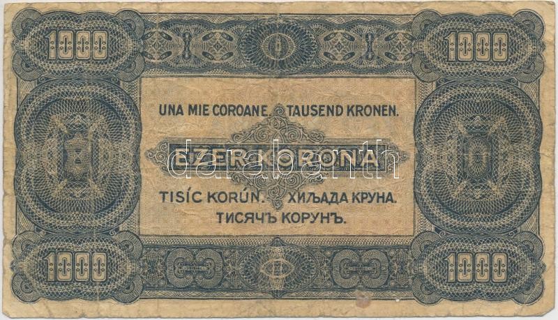 1923. 1000K "8 FILLÉR - NYOLC FILLÉR" felülnyomással T:III- https://www.darabanth.com/hu/253-Gyorsarveres/253.0/Numizmatika/Magyar-bankjegyek~200007/1923-1000K-8-FILLER--NYOLC-FILLER-felulnyomassal-TIII-~II1228830