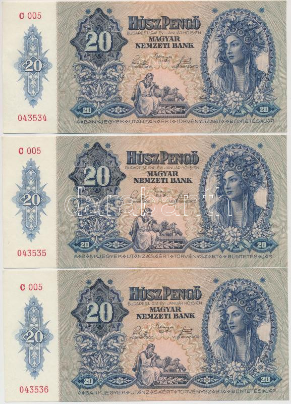 1941. 20P (3x) sorszámkövetők T:I,I-