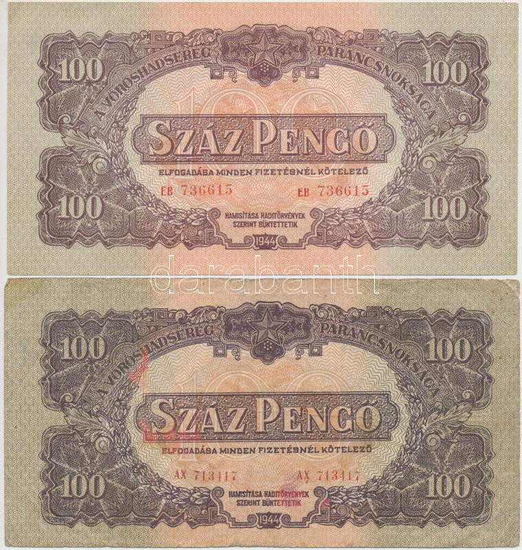 Leírás: 1944. 100P "A Vörös Hadsereg Parancsnoksága" (2x) színváltozat T:II,III