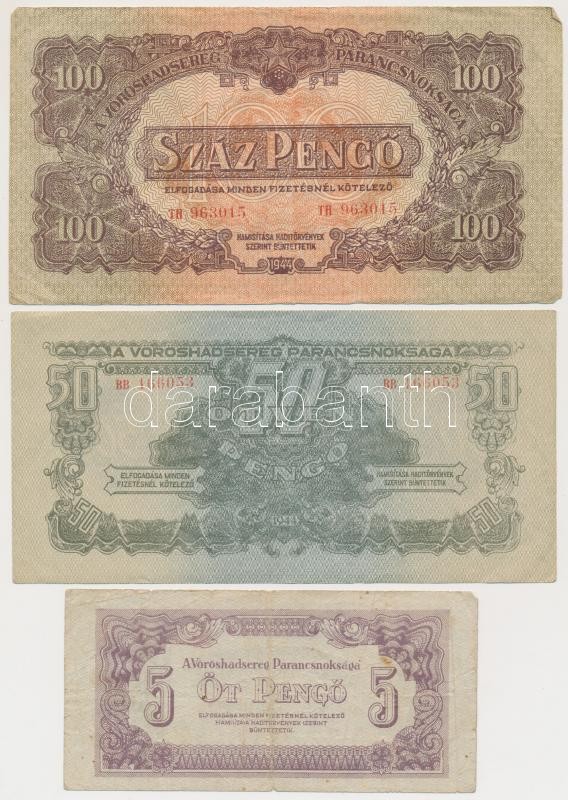 Leírás: 1944. 1P-100P (10x) "A Vörös Hadsereg Parancsnoksága" T:vegyes