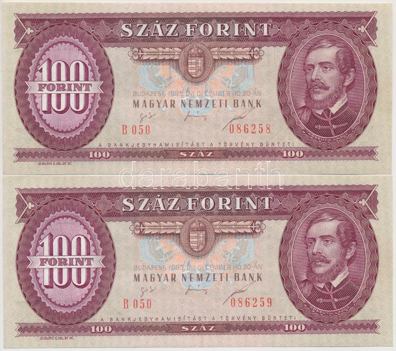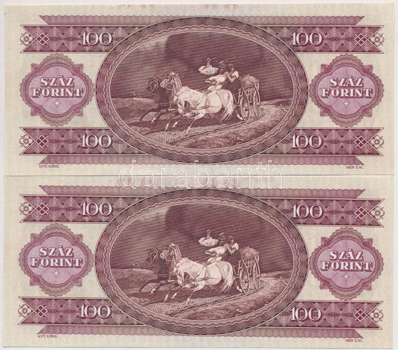 1995. 100Ft (2x) sorszámkövetők, nyomdai festékfoltokkal T:I- https://www.darabanth.com/hu/253-Gyorsarveres/253.0/Numizmatika/Magyar-bankjegyek~200007/1995-100Ft-2x-sorszamkovetok-nyomdai-festekfoltokkal-TI-~II1229660