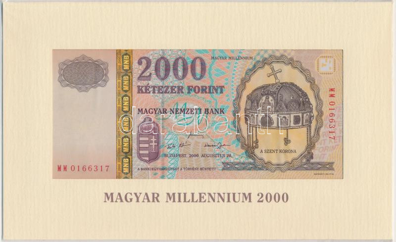 2000. 2000Ft "Millennium" eredeti bontatlan csomagolásban T:... https://www.darabanth.com/hu/253-Gyorsarveres/253.0/Numizmatika/Magyar-bankjegyek~200007/2000-2000Ft-Millennium-eredeti-bontatlan-csomagolasban-TI~II1225008