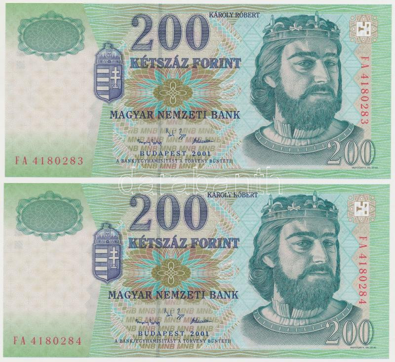 2001. 200Ft "FA" (2x) sorszámkövetők T:II