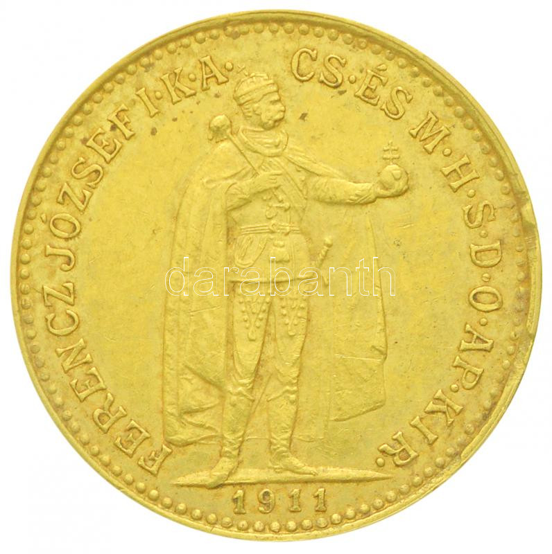 Hungary... https://www.darabanth.com/hu/253-Gyorsarveres/253.0/Numizmatika/Magyar-es-kulfoldi-arany-penzek~200010/1911KB-10K-Au-Ferenc-Jozsef-338g0900-T2-ph--Hungary-1911-10-Korona-Au-Franz-Joseph-I-3~II1223375