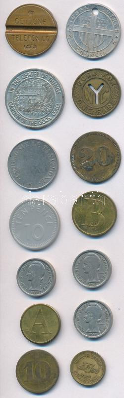 Leírás: 14db-os vegyes külföldi szükségpénz tétel: zsetonok, játékpénzek, tantuszok T:vegyes