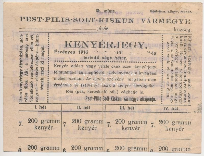 1916. Kenyérjegy "Pest-Pilis-Solt-Kiskun Vármegye" számára, ... https://www.darabanth.com/hu/253-Gyorsarveres/253.0/Numizmatika/Magyar-es-kulfoldi-papir-es-fem-szuksegpenzek~200006/1916-Kenyerjegy-Pest-Pilis-Solt-Kiskun-Varmegye-szamara-hatoldalan-Ertesites-Dunakesz~II1225409