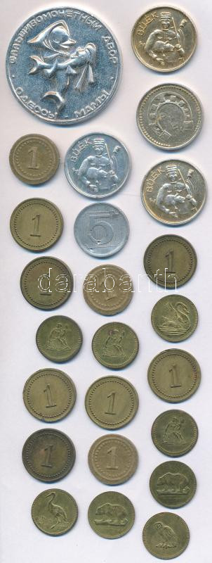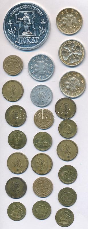 Leírás: 24db-os vegyes szükségpénz tétel: zsetonok, játékpénzek, szerencse érmék T:vegyes