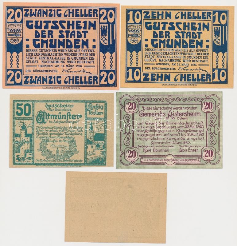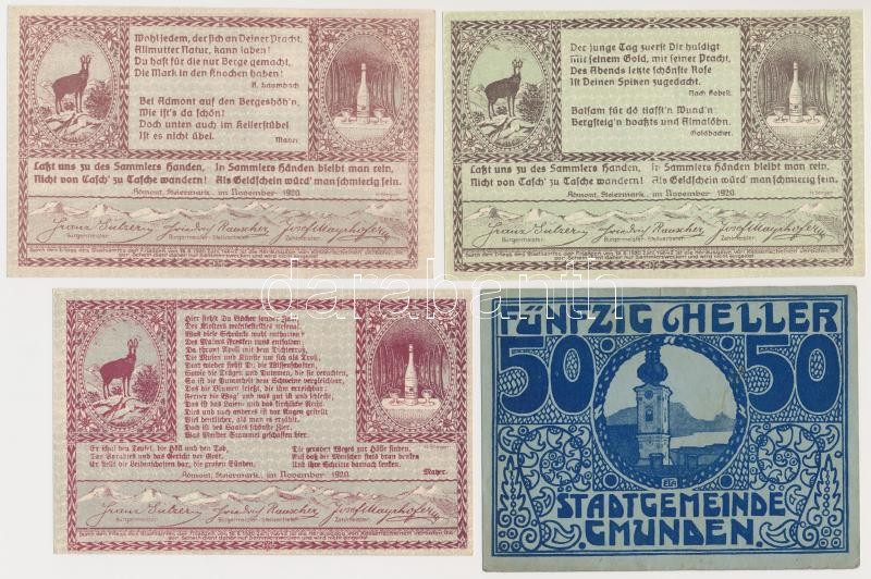 Austria / Gmunden 1920. 10 Heller + 20 Heller + 50 Heller + Admont 1920. 40 Heller + 60 Heller + 80 Heller + Aistersheim 1920. 20 Heller + Altmünster 1920. 50 Heller + Götzendorf 1920. 10 Heller C:AU,XF,F