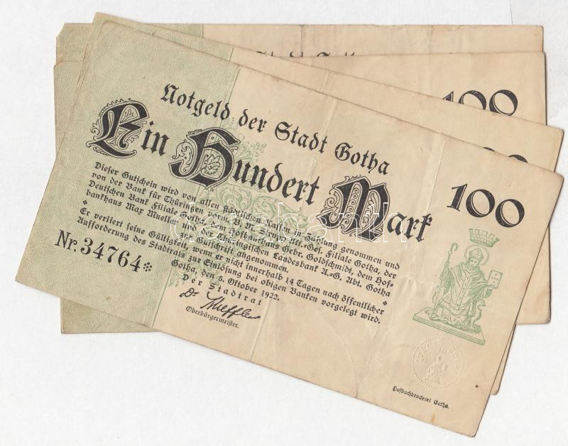 Németország / Weimari Köztársaság / Gotha 1922. 100M (5x) T:III