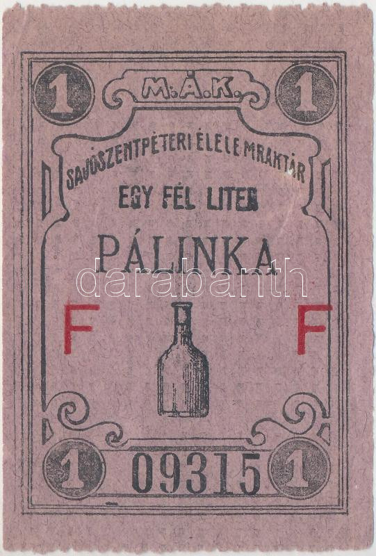 Sajószentpéter DN 1/2 liter pálinka jegy "Sajószentpéteri Élelemr... https://www.darabanth.com/hu/253-Gyorsarveres/253.0/Numizmatika/Magyar-es-kulfoldi-papir-es-fem-szuksegpenzek~200006/Sajoszentpeter-DN-12-liter-palinka-jegy-Sajoszentpeteri-Elelemraktar-TIII-kis-ly~II1223453