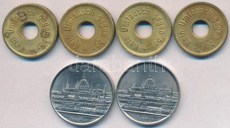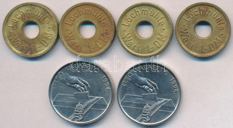 Leírás: Vegyes: Németország DN 1M "Lochmühle" Br zseton (4x) + 1994. "Első választó" Ni zseton (2x) T:2