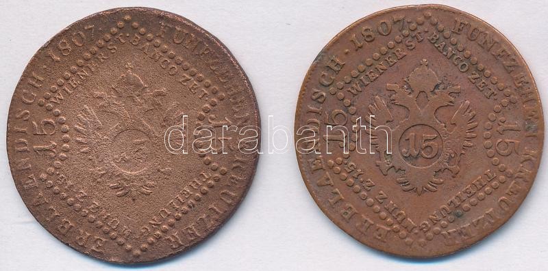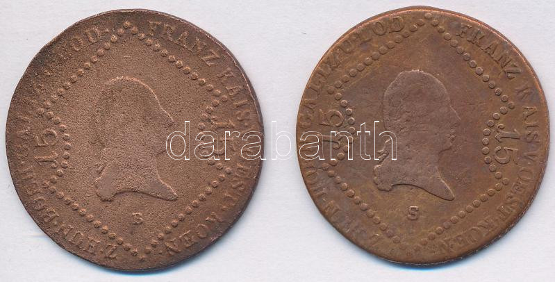 Leírás: 1807B 15kr Cu + 1807S 15 kr Cu "I. Ferenc" T:2-,3