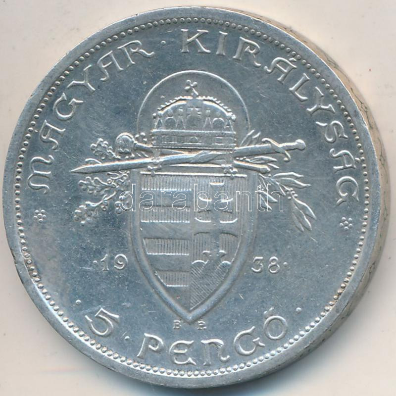Adamo P8.1 https://www.darabanth.com/hu/253-Gyorsarveres/253.0/Numizmatika/Magyar-fem-es-ezustpenzek~200008/1938-5P-Ag-Szent-Istvan-T2-ph--Adamo-P81~II1223521