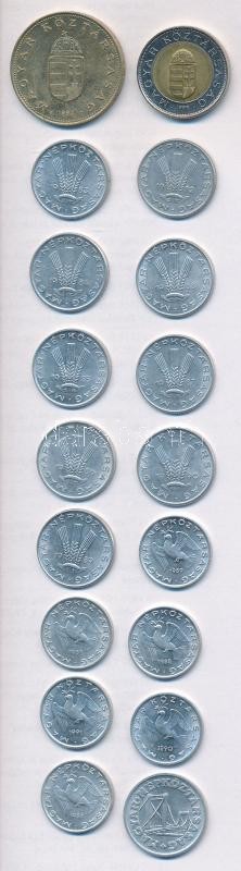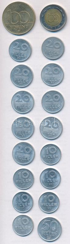 Leírás: 1986-1990. 10f Al (6x) + 1982-1990. 20f Al (9x) + 1987. 50f Al + 1995. 100Ft + 1998. 100Ft T:1-2