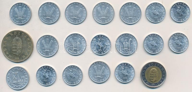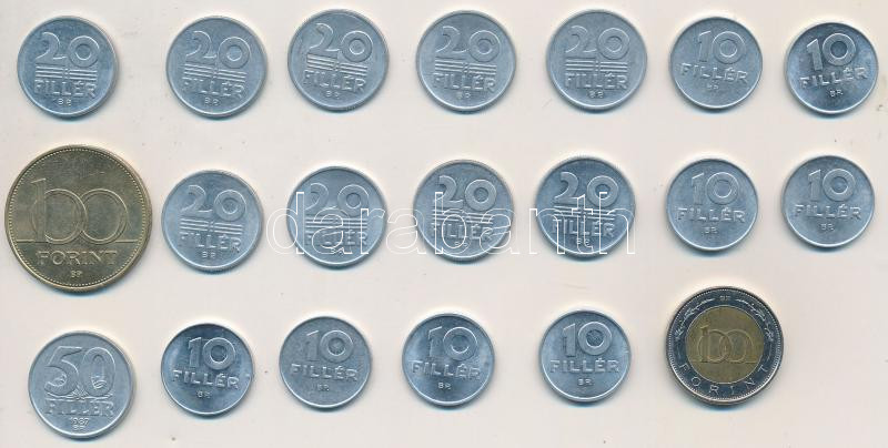Leírás: 1986-1990. 10f Al (8x) + 1982-1990. 20f Al (9x) + 1987. 50f Al + 1995. 100Ft + 1998. 100Ft T:1-2