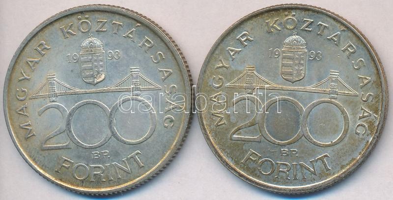 1993. 200Ft Ag "MNB" (2x) T:2 patina