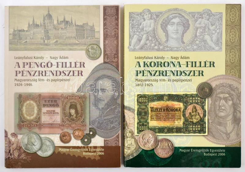 Leányfalusi Károly - Nagy Ádám: A korona - fillér pénzrendszer. Magyarország fém- és papírpénzei 1892-1925. Budapest 2006. + A pengő - fillér pénzrendszer. Magyarország fém- és papírpénzei 1926-1946. Budapest 2006. használt állapotban