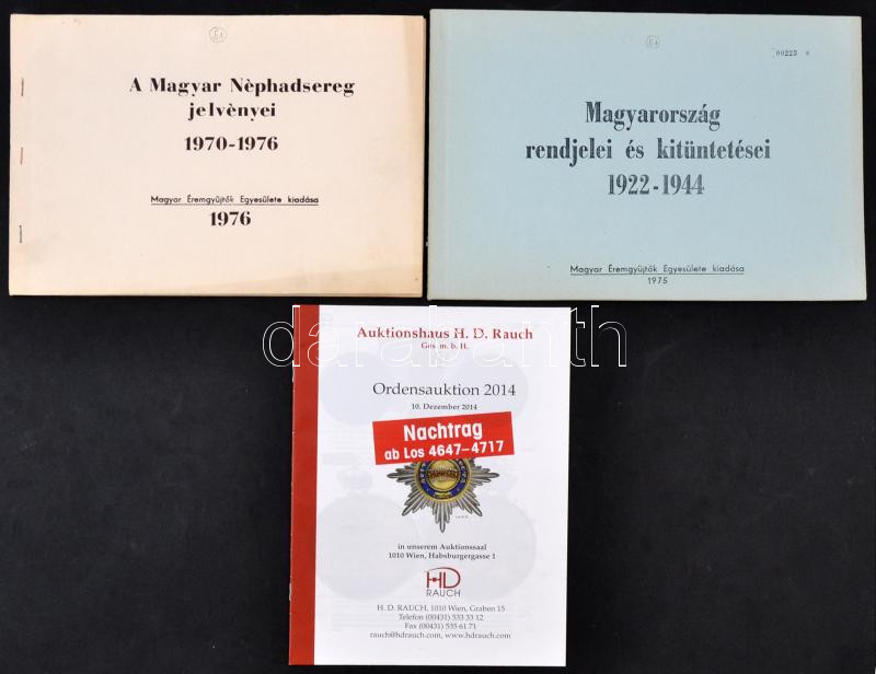 Tálas Géza: Magyarország rendjelei és kitüntetései 1922-1944. MÉE kiadása, Budapest 1975. + Márton Sándor - Tálas Géza: A Magyar Néphadsereg jelvényei. MÉE 1976. + HD Rauch árverési katalógus, 2004.