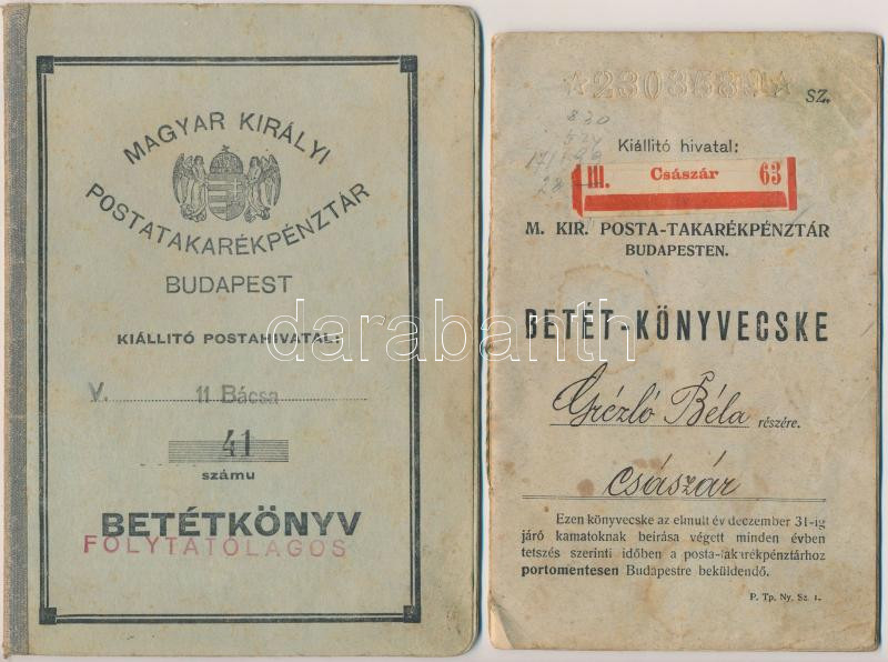 ~1908-1940. 3db klf betétkönyv, közte "Magyar Királyi Postatakaré... https://www.darabanth.com/hu/253-Gyorsarveres/253.0/Numizmatika/Numizmatikaval-kapcsolatos-egyeb-tetelek~200003/7E1908-1940-3db-klf-betetkonyv-kozte-Magyar-Kiralyi-Postatakarekpenztar-Budapest-2xklf-~II1230379