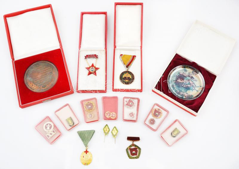 Leírás: 15db vegyes szocialista jelvény, emlékérem főként eredeti tokkal, közte "Kiváló Dolgozó", "Szocialista Brigád" jelvények, "Aranykalász Újkígyós" zománcozott fém jelvény tokban T:vegyes