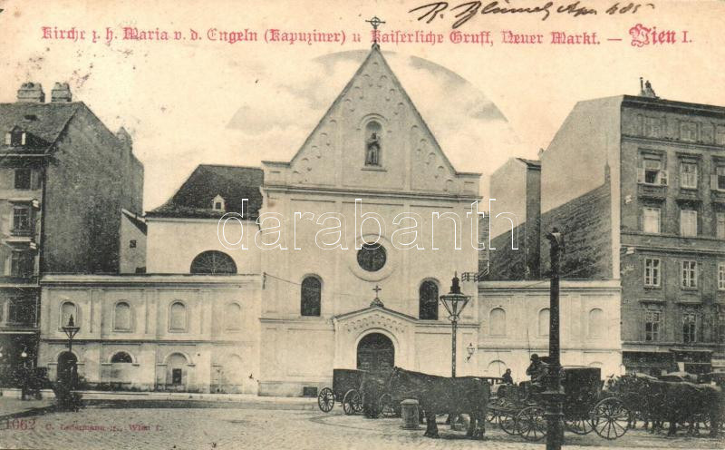 Vienna, Wien I. Neuer Markt, Kirche z. h. Maria v.d. Engeln Kapuziner,... https://www.darabanth.com/hu/253-Gyorsarveres/253.0/Varoskepes-lapok-es-kepeslap-tetelek/Ausztria~72/Vienna-Wien-I-Neuer-Markt-Kirche-z-h-Maria-vd-Engeln-Kapuziner-kaiserliche-Gruft-church-i~II1227205