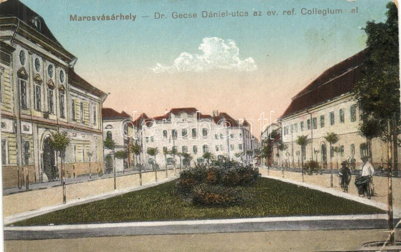 Leírás: Marosvásárhely, Targu Mures; Dr. Gecse Dániel utca és a Református Kollégium / street, dormitory (vágott / cut)