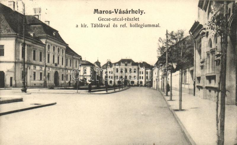 Leírás: Marosvásárhely, Targu Mures; Gecse utca, Királyi Táblabíróság, református kollégium / street, court house, dormitory
