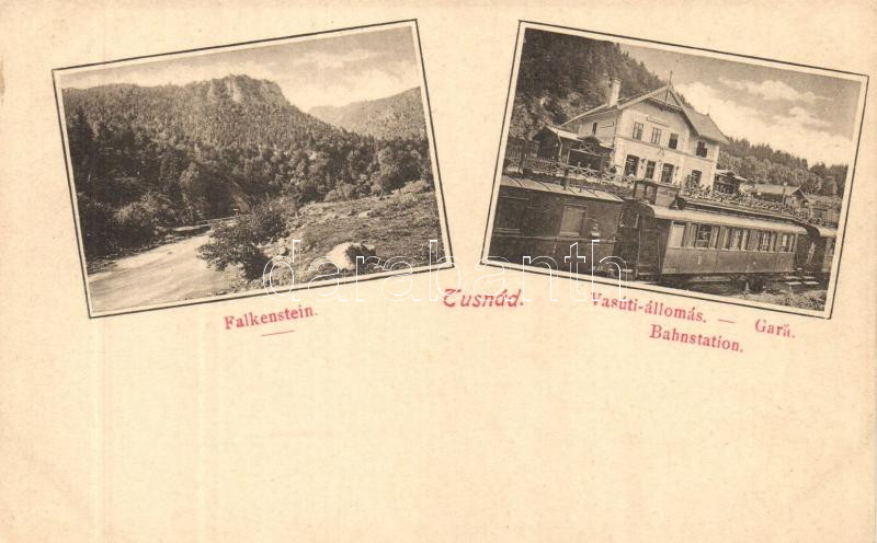 Leírás: Tusnád, Falkenstein, vasútállomás, vonat / railway station, train