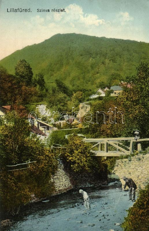 Leírás: Lillafüred, Szinva részlet, horgászok, híd (vágott / cut)