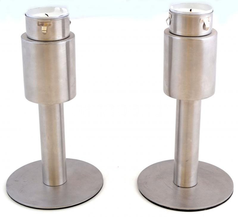 Leírás: 2 db szivacsos talpú mutatós fém gyertyatartó, m: 19 cm