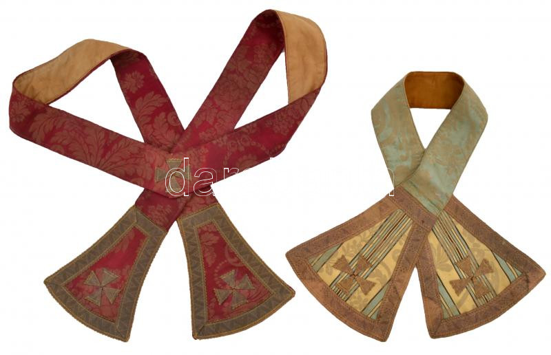 Leírás: cca 1900 2 db stóla, selyem-vászon, hibákkal, h:90 cm,