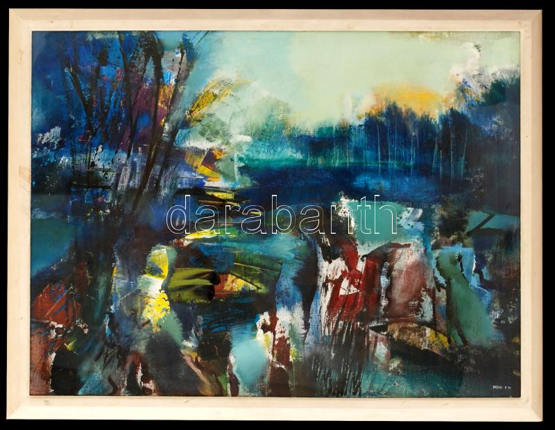 Leírás: Pataki Ferenc (1941-): Holt-Tisza. Akril, vászon, jelzett, üvegezett keretben, 60×80 cm