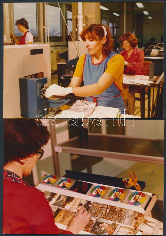1979 Budapest, A Fővárosi Fotó Vállalat központi laborháza, fényképgyára, ahol kidolgozták az országból összegyűjtött színes amatőr filmeket, 13 db fotó, 9x14 cm és 13x18 cm közötti méretben