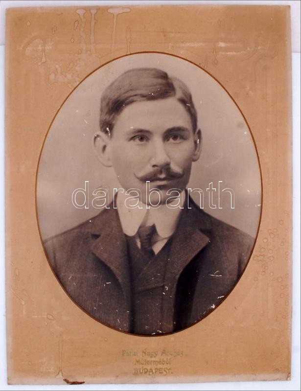 Leírás: Cca 1910 2 férfi portré, "Párisi Nagy Áruház Műterméből" felirattal, kopott, 44×33 cm (2×)