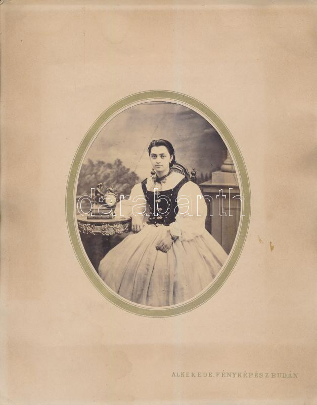 cca 1870 Alkér Ede műtermi felvétele P. Arger Máriáról, akit később Széll néninek titulált a képet feliratozó ismeretlen, 13,5x11 cm, karton 27x21,5 cm