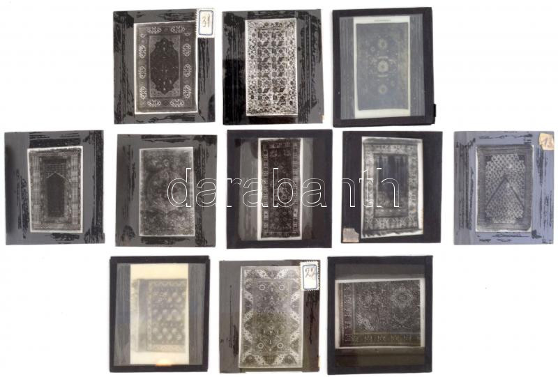 Leírás: cca 1910 Régi szőnyegekről készült diapozitív felvételek, 11 db üveglemez, 8x8 cm