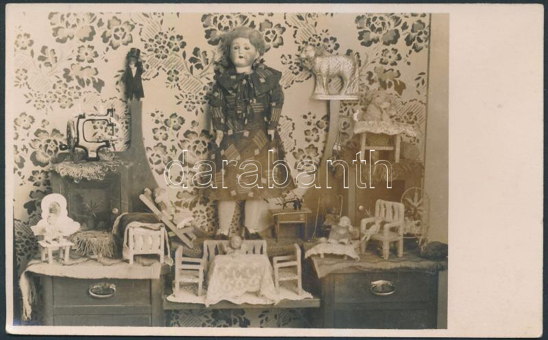 cca 1920-1930 Gyermekjátékok, fotólap, 9x14 cm https://www.darabanth.com/hu/254-Gyorsarveres/254.0/Festmeny-mutargy-papirregiseg-egyeb/Foto~400032/cca-1920-1930-Gyermekjatekok-fotolap-9x14-cm~II1235616