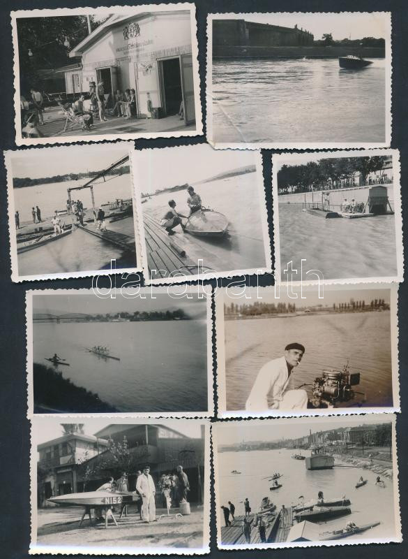Leírás: cca 1930 Vízi élet a Dunán. 30 db érdekes fotó: csónakházak, hajók, csónakok, gőzősök
