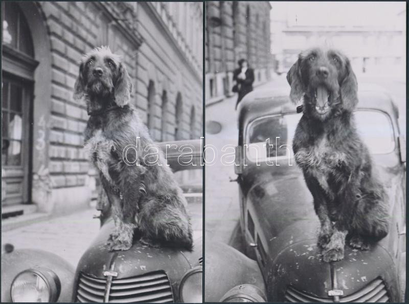 Leírás: cca 1948 Álmos a kocsira telepített riasztó, Rózsa György fotóriporter hagyatékában őrzött 3 db negatív modern nagyítása, 15x10 cm