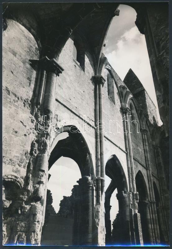 Leírás: cca 1950-1960 A zsámbéki templom romjai, 23x16 cm
