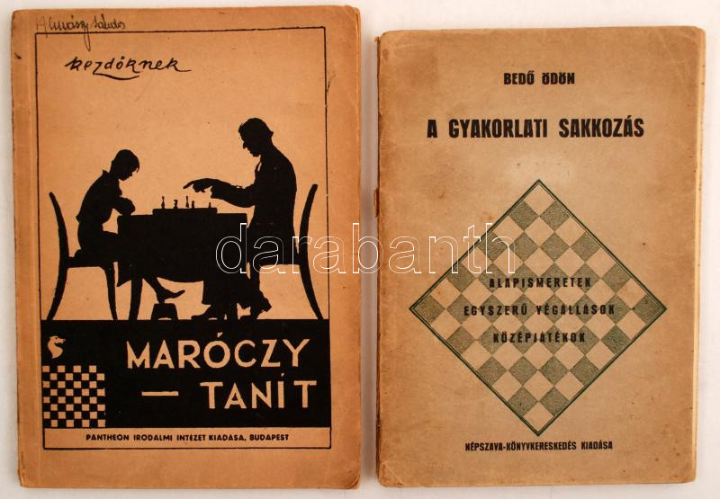 https://www.darabanth.com/hu/254-Gyorsarveres/254.0/Festmeny-mutargy-papirregiseg-egyeb/Konyvek-Egyeb-ritkasagok~400037/2-db-sakkozassal-kapcsolatos-kiadvany-Maroczy-tanit-A-sakkjatek-elemei-Sakktabla-ismerete-~II1237972