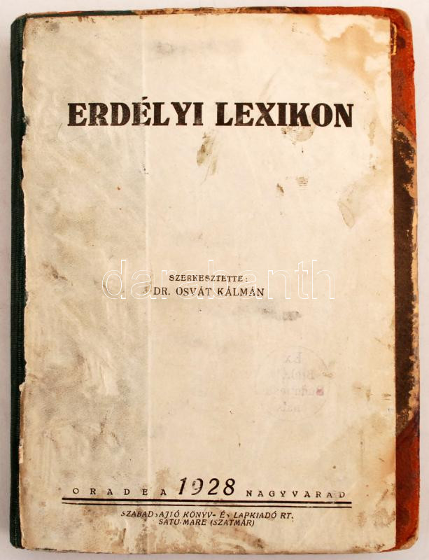 Dr. Osvát Kálmán(szerk.): Erdélyi lexikon. Nagyvárad, 1928, Szabad Sajtó Könyv- és Lapkiadó Rt. Félvászon kötés, hiányzó címlappal, kopottas állapotban.